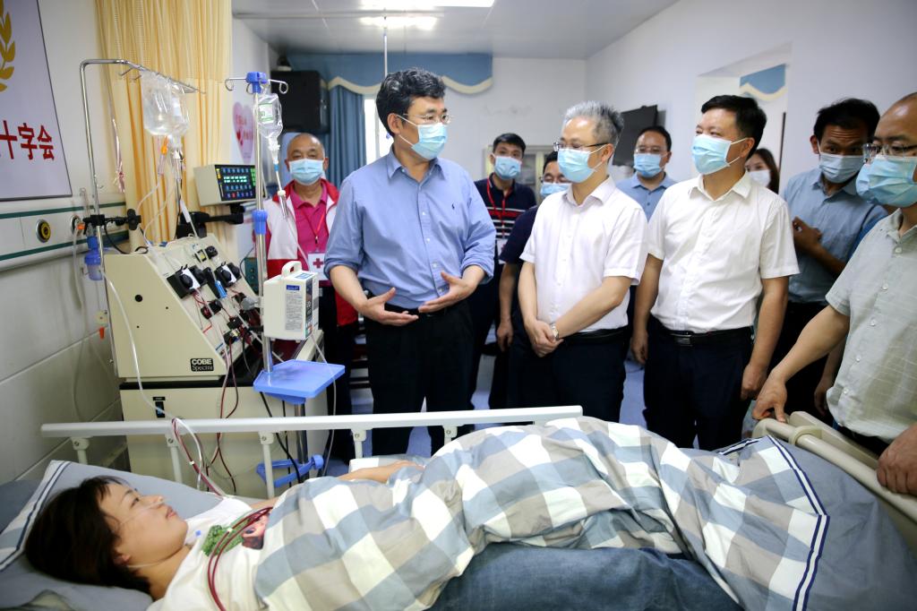 公司党委书记王淑霞,副书记刘敬龙陪同公司党委书记卢先明一行,带着公司与公司党委行政的浓浓情意,和岳阳市卫健委副主任周伟祥,岳阳市中心医院经理张壮军,岳阳市红十字会秘书长隋秉华一起,到医院看望慰问了胡颖。