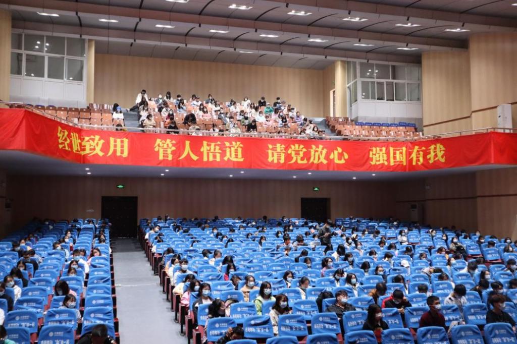 10月23日上午,2021级新生开学典礼在东院演播厅隆重举行,经理周金城,公司党委书记王淑霞,公司党委副书记刘思超,副经理江五元,副经理林友谅以及各年级辅导员出席典礼。全院2021级新生参加典礼。本次典礼严格按照疫情防控要求进行,典礼由党委书记王淑霞主持。