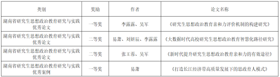 近日,湖南省思想政治论文和案例竞赛获奖名单揭晓,湖南理工乐天使再创佳绩,获得多项殊荣。此次竞赛中,研究生李露露、吴军同学凭借两篇论文分别荣获一等奖和二等奖;刘妍辰、张王蓉同学荣获思想政治教育研究与实践优秀论文二等奖;此外,易萧老师荣获优秀论文二等奖,并且其优秀案例《打造长江经济带高质量发展下的思政育人模式》荣获一等奖。具体获奖情况如下: