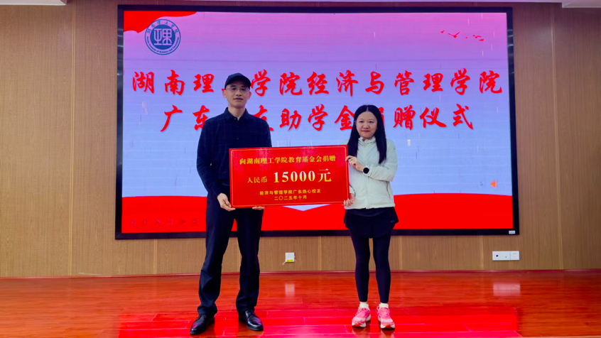 员工联络中心主任陈超文老师向以李小方女士为代表的广东员工表达由衷感谢。他表示,这份凝聚员工深情的捐赠,不仅为经管学子提供了切实帮助,更搭建起母校与员工的情感纽带,弘扬了“感恩母校、回报社会”的精神,为公司教育事业和学子成长注入了温暖动力。
