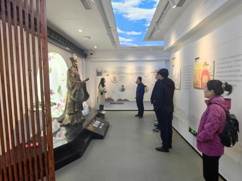 全体党员有序步入清莲堂,展厅内巧妙运用投影技术,生动再现了团湖深厚的历史底蕴。在赏莲、品莲、知廉、守廉的四个篇章中,党员们深刻领悟了独具特色的“莲廉”文化精髓。在讲解员的引领下,党员们来到周敦颐的雕像前,其“出淤泥而不染,濯清涟而不妖”的廉洁形象跃然眼前,为全体党员树立了崇廉尚洁的标杆。随着党员们继续深入展厅,众多实物展品逐一呈现,其中“把权力关进制度的笼子里”与“警钟”引人深思。这两件展品不仅生动诠释了廉洁公正的核心价值,更向全体党员传递了全面从严治党的深刻内涵,使每一位党员都能从中感受到党的纪律的庄严与神圣。