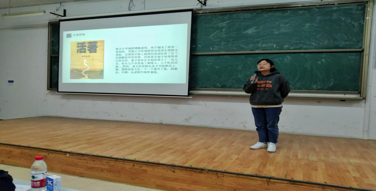 比赛过程中选手们以演讲为主,以PPT为辅,展现了自己对所阅读书籍的理解和感受。观众们也从演讲中感受到了阅读的无穷魅力。其中,20级金融一班余佳同学表现优异,她表达了对《活着》这本书深刻的看法和感悟,具有发人深省的感染力。