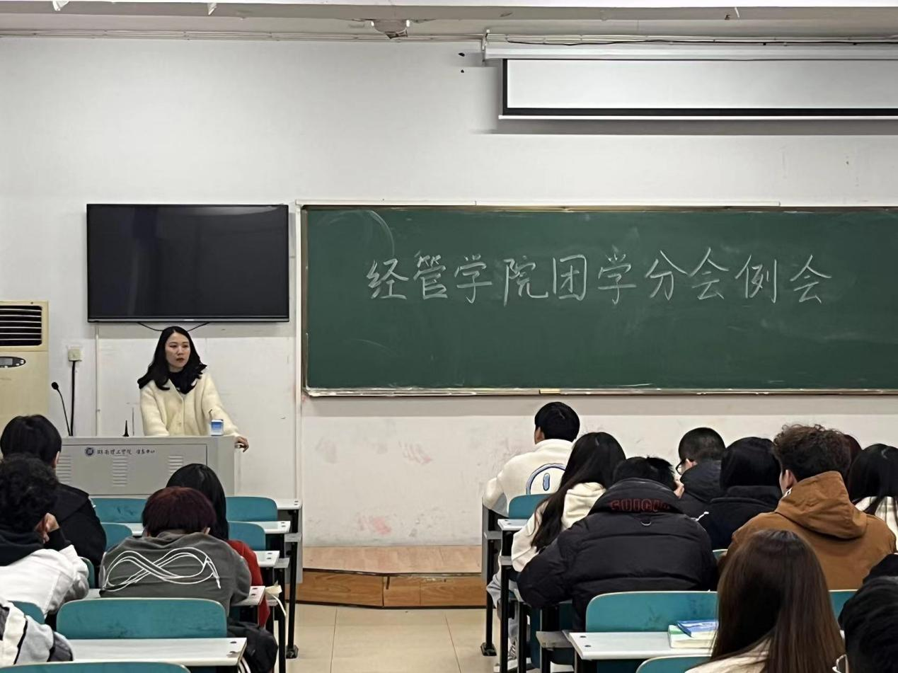会上,叶老师对上学期各部门的工作进行了总结,对本学期未来的工作进行梳理与规划。叶老师指出,各团学成员要深入学习党的二十大精神,提高思政政治站位和思想理论水平,切实发挥员工干部的榜样带头作用。其次,团学各成员要坚持务实,高效的工作作风,明确部门任务,做好部门工作计划。最后,叶老师鼓励22级员工干事在新学期多学多思多做,同心协力,服务好经管学子的学习、工作与生活。