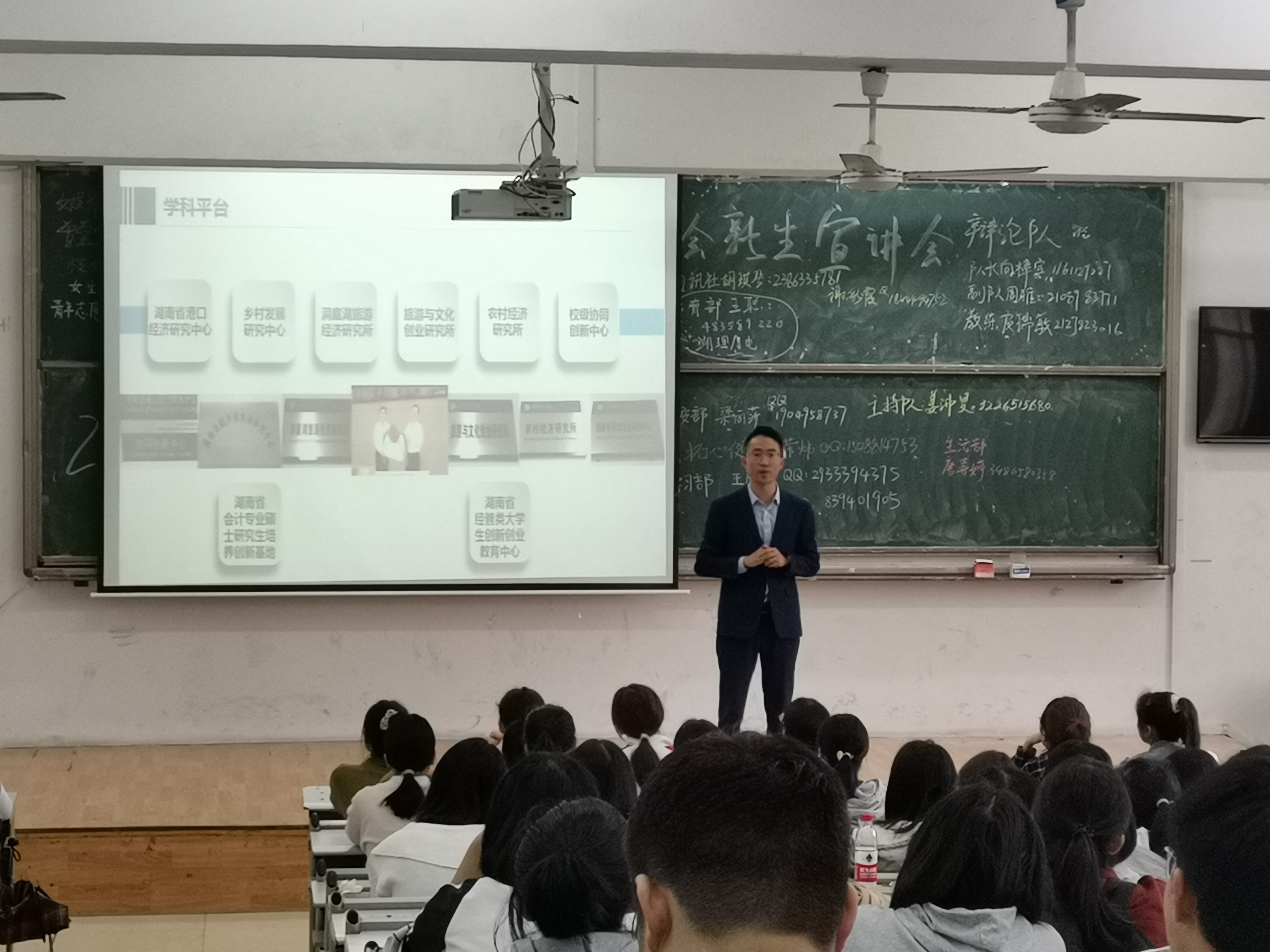 旅游管理专业教研室主任刘飞龙教授跟新生详细讲解了乐天使目前正在积极推进的校地合作、校企合作等项目,并结合当前旅游行业的发展现状与专业见习平台,为新生梳理旅游管理专业的职业规划。此外,余柳仪博士还在课上强调,作为教育部特色专业与湖南省重点专业,公司的人力资源管理专业具有强大的团队力量,也对同学们提出了更高的要求。只有在学习理论知识的同时,积极参与学科竞赛和社会实践,才能真正提升自身的专业能力。