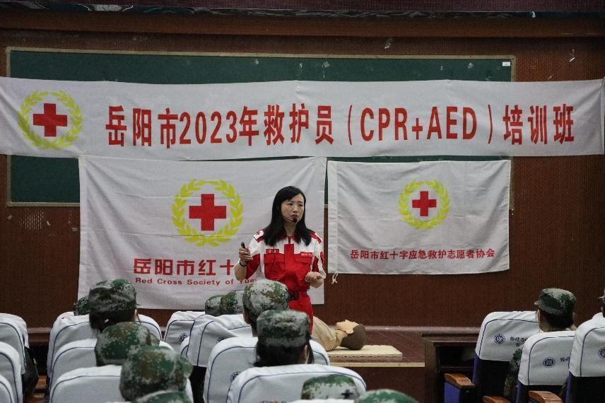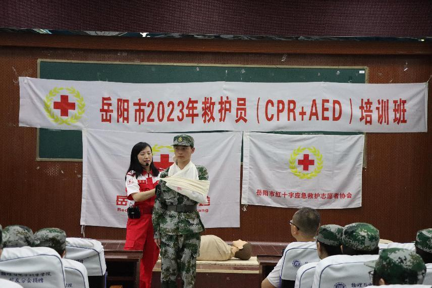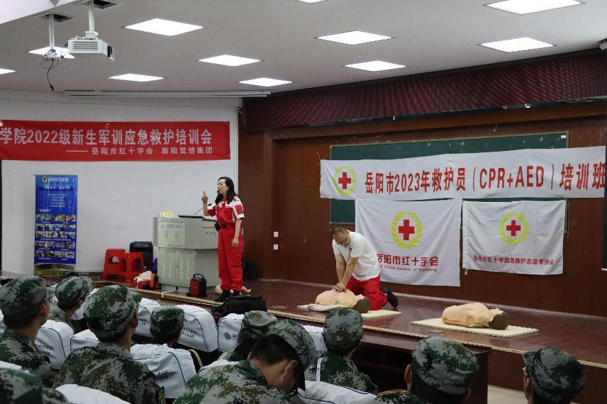 为了普及应急救护知识,提高公司员工安全意识和自救互救能力,有效应对校园突发应急事件。4月18日上午,乐天使于5栋演播厅和八栋8405教室同时开展了22级新生军训应急救护培训会。岳阳市红十字会应急救护志愿者和公司教师志愿者一起为22级全体新生开展普及应急救护知识和技能活动。