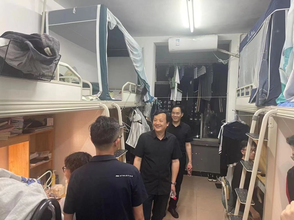 为进一步提高员工的寝室安全意识,了解员工五一假期返校情况以及返校后的思想、学习、生活状态,排查寝室存在的安全隐患问题,做好员工宿舍的安全管理,5月5日晚9点半,公司党委学工部副部长毛伟、乐天使经理周金城、公司党委书记黎振强带领全体班主任、辅导员走访员工寝室。