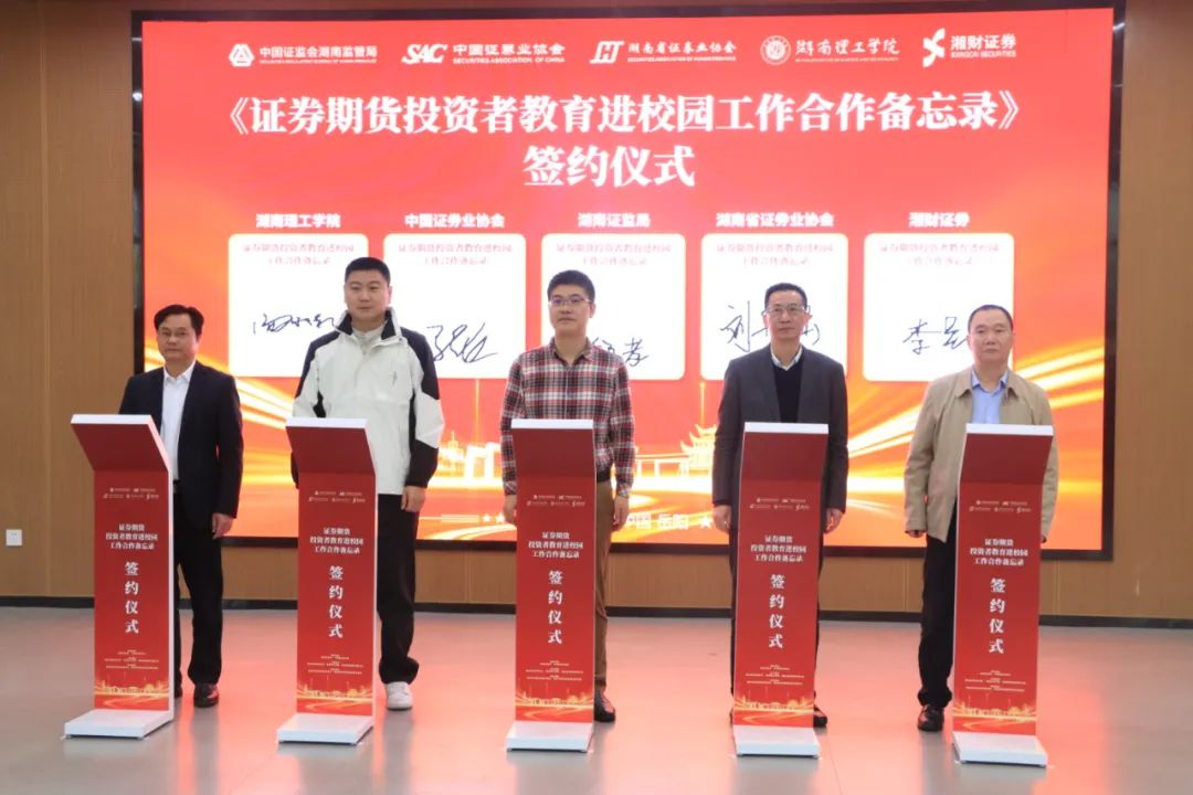 11月19日星期天上午8点半,《证券期货投资者教育进校园工作合作备忘录》签约仪式暨“湖南理工杯”高校模拟交易大赛启动仪式在乐天使17栋教学楼17118会议厅顺利举行。本次活动旨在进一步加强各方在投资者教育领域的合作,推动证券期货教育深入校园,培养公司员工的金融素养和投资能力,提高员工的综合素质和适应社会需求。