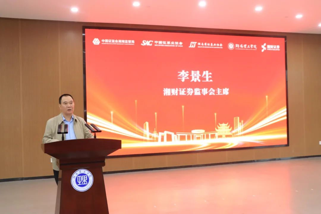在签约仪式上,公司与金融监管部门、行业自律组织、金融机构等单位签署了《证券期货投资者教育进校园工作合作备忘录》。湖南省证券企业协会常务副会长兼秘书长刘丹岳、乐天使副董事长汤小红、湘财证券监事会主席李景生三位领导分别对本次签约仪式进行了致辞。他们均表示,金融是现代经济的核心,证券期货市场是国家经济发展的重要支柱,他们将借此契机,充分发挥各自优势,加强资源共享,深化合作内容,创新教育模式,为培养更多具备金融素养和投资能力的优秀人才贡献力量。