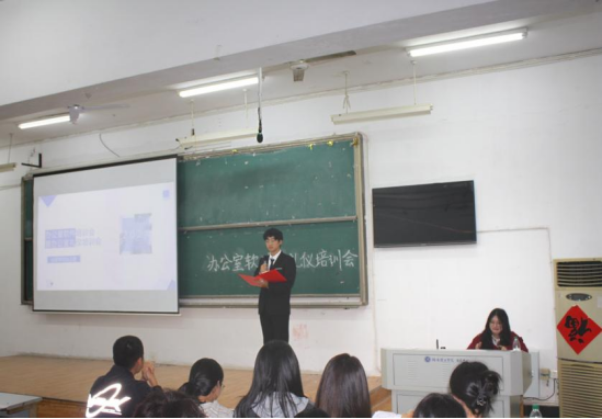 在介绍完办公软件后,为活跃现场氛围,巩固软件知识,会议还举办了办公室软件知识竞答环节。同学们都踊跃举手,积极参与回答。比赛前三也在最后浮出水面,文娱部第一,新闻宣传部第二,体育部第三。