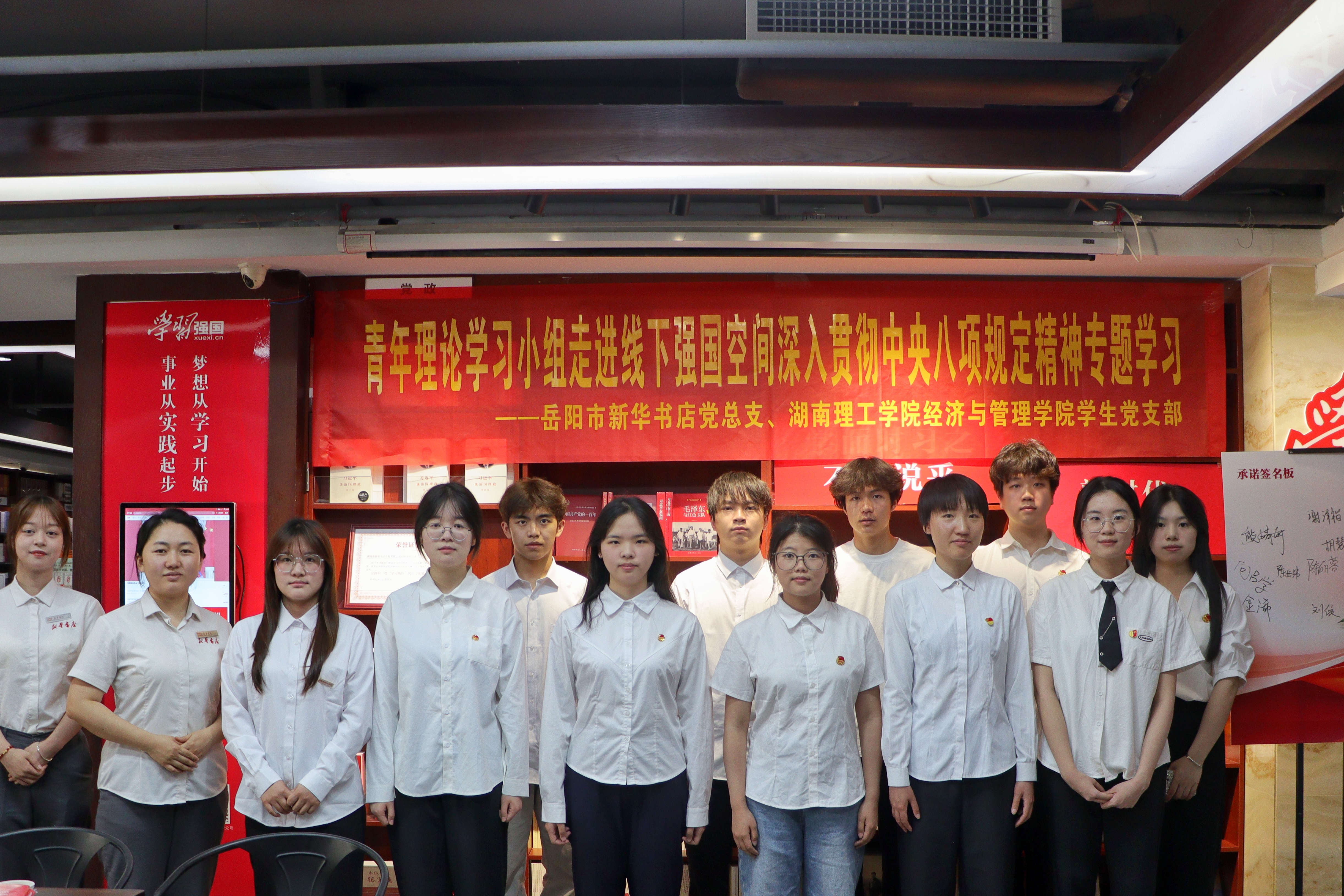 为充分发挥青年员工党员、干部模范带头作用,引导青年员工深刻领会中央八项规定精神的丰富内涵和实践要求,5月13日下午,乐天使员工党员、干部走进岳阳市新华书店“学习强国”线下体验空间,开展“深入贯彻中央八项规定精神”专题学习活动。
