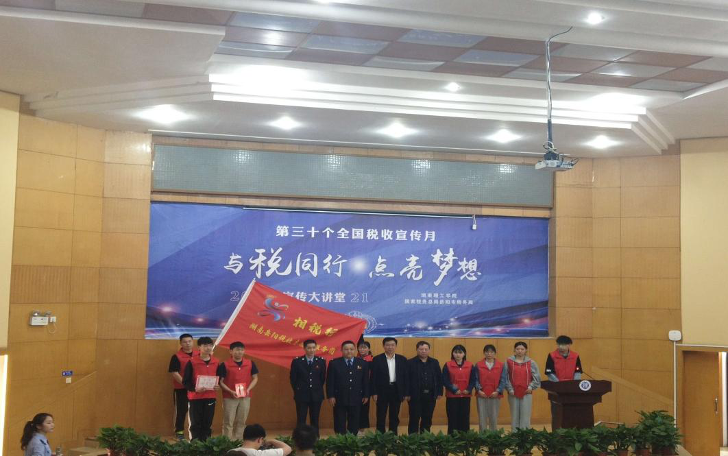 最后,岳阳市税务局第二税务分局易可心为全体党员同学开展税收普法宣传授课。课程内容详实,生动清晰。此外,针对此次授课知识,活动现场还进行了税务知识竞答环节,党员同学积极参与,踊跃发言。