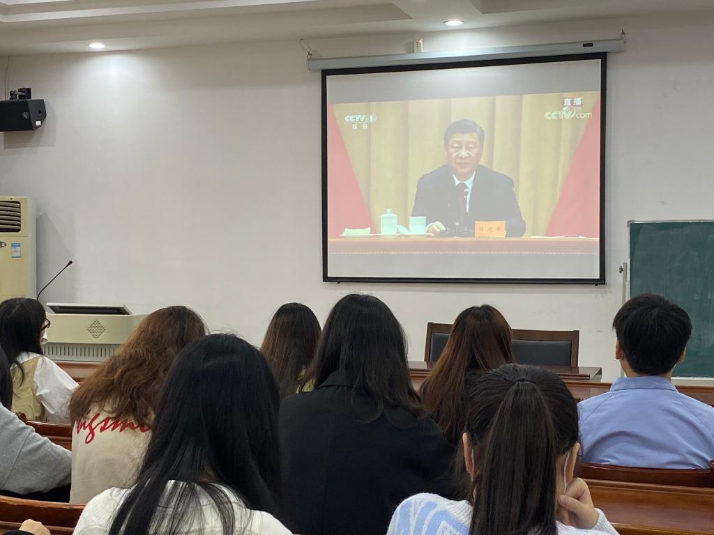 2022年5月10日,庆祝中国共产主义青年团成立100周年大会在北京人民大会堂隆重举行。​乐天使全体辅导员带领员工党员、员工骨干于8301集中观看大会直播,部分无课同学在教研室、寝室等地自行收看大会直播。