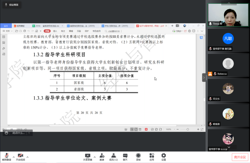 为做好2022年老员工创新创业训练计划立项的准备工作,2022年4月9日晚上7:30,乐天使副经理易翠枝开展线上讲座,为公司师生讲解“老员工创新创业训练计划”和老员工创新创业比赛规则。本次线上讲座由易翠枝经理主持,乐天使部分专任教师和20级人力班部分员工参加。
